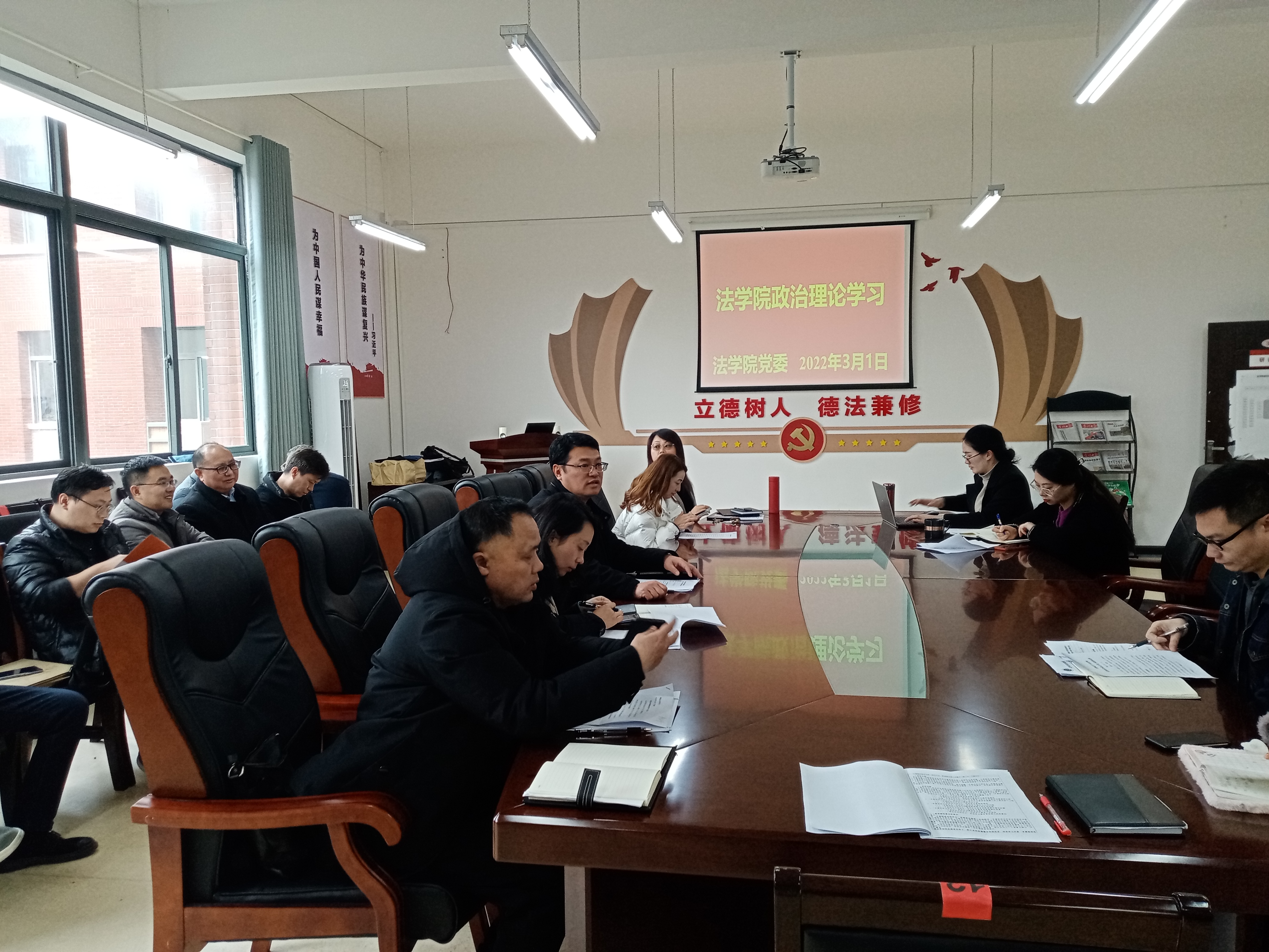 (法学院 图文/报道 徐方)2022年3月1日下午,法学院党委在文德楼A8-310会议室围绕“国发〔2022〕2号文件精神”专题组织召开2022年度第一次教职工政治理论集体学习集体研讨会议。院领导及全院教职工出席会议,院党委书记詹伟主持会议。
