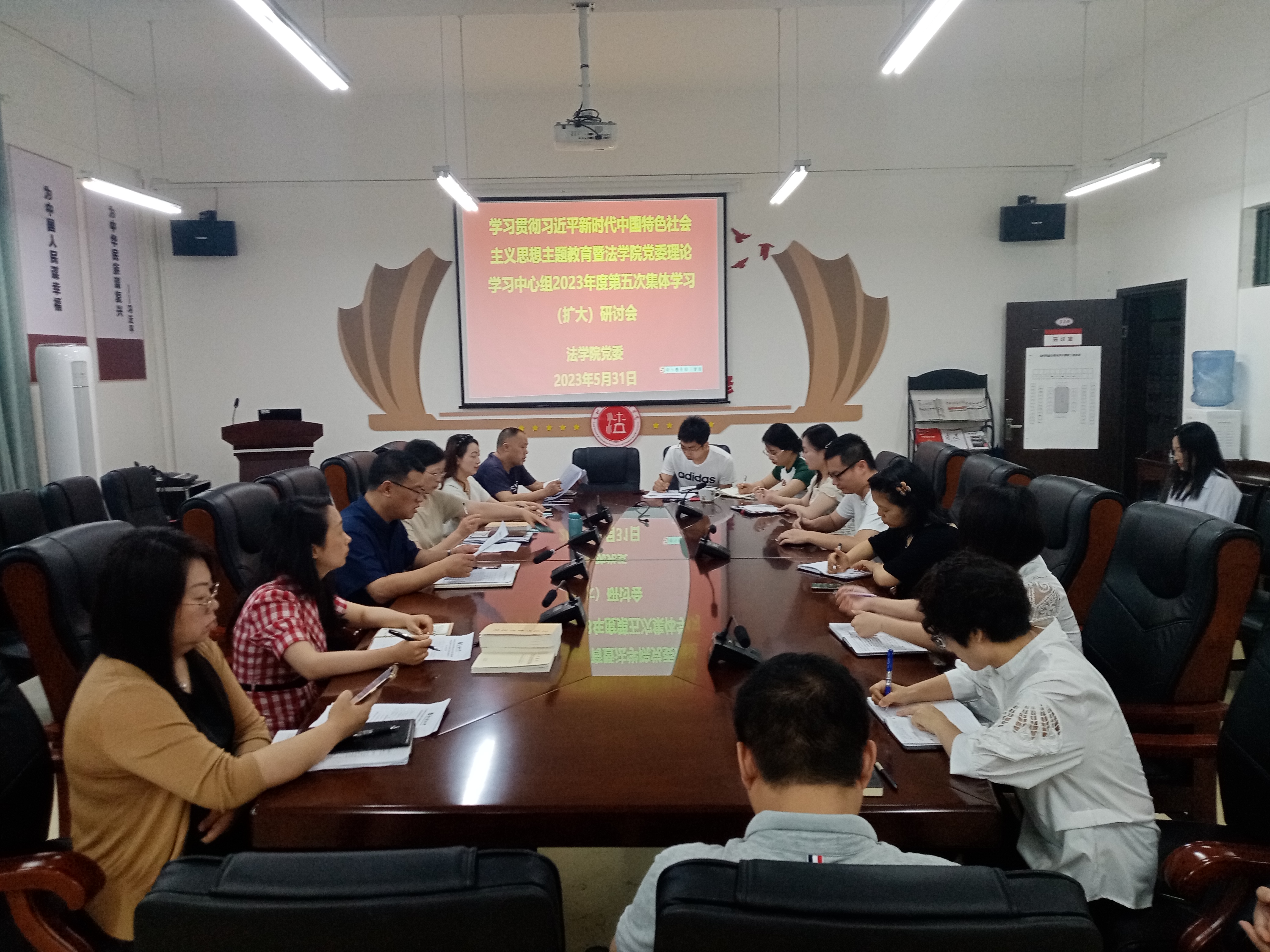 (法学院 图文/报道 徐方)2023年5月31日中午,法学院党委理论学习中心组在文德楼A8-310会议室召开学习贯彻亚搏(中国)新时代中国特色社会主义思想主题教育暨法学院党委理论学习中心组2023年度第五次集体学习(扩大)研讨会。学院领导及副科级及其以上的工作人员参加会议。学院党委书记詹伟主持会议。