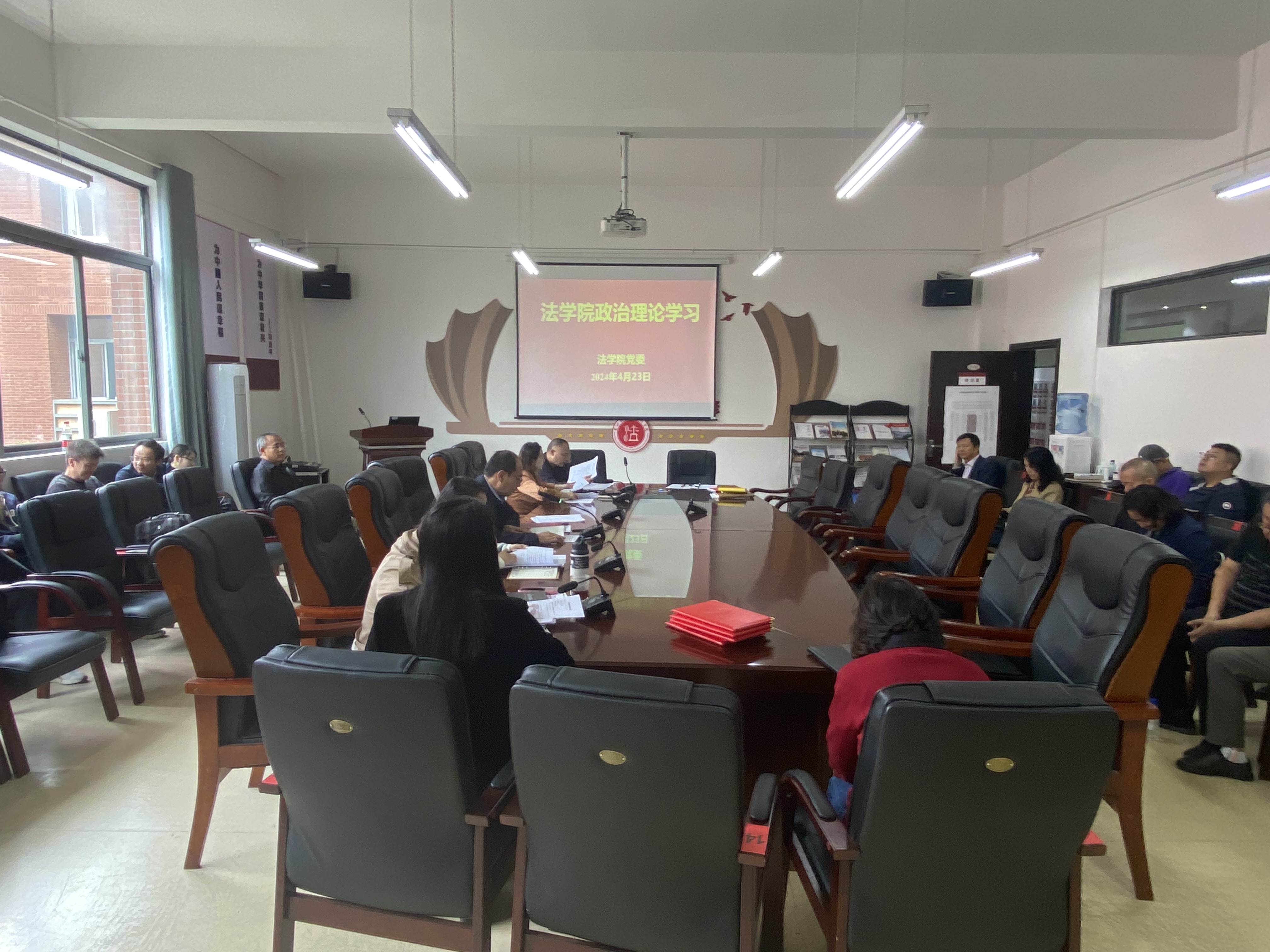 (法学院 莫丹洵 报道|摄影 )4月23日下午,法学院党委组织召开2024年度第三次教职工政治理论集体学习总体国家安全观专题研讨会。院领导及全院教职工出席会议,院党委书记邵新顺主持会议。