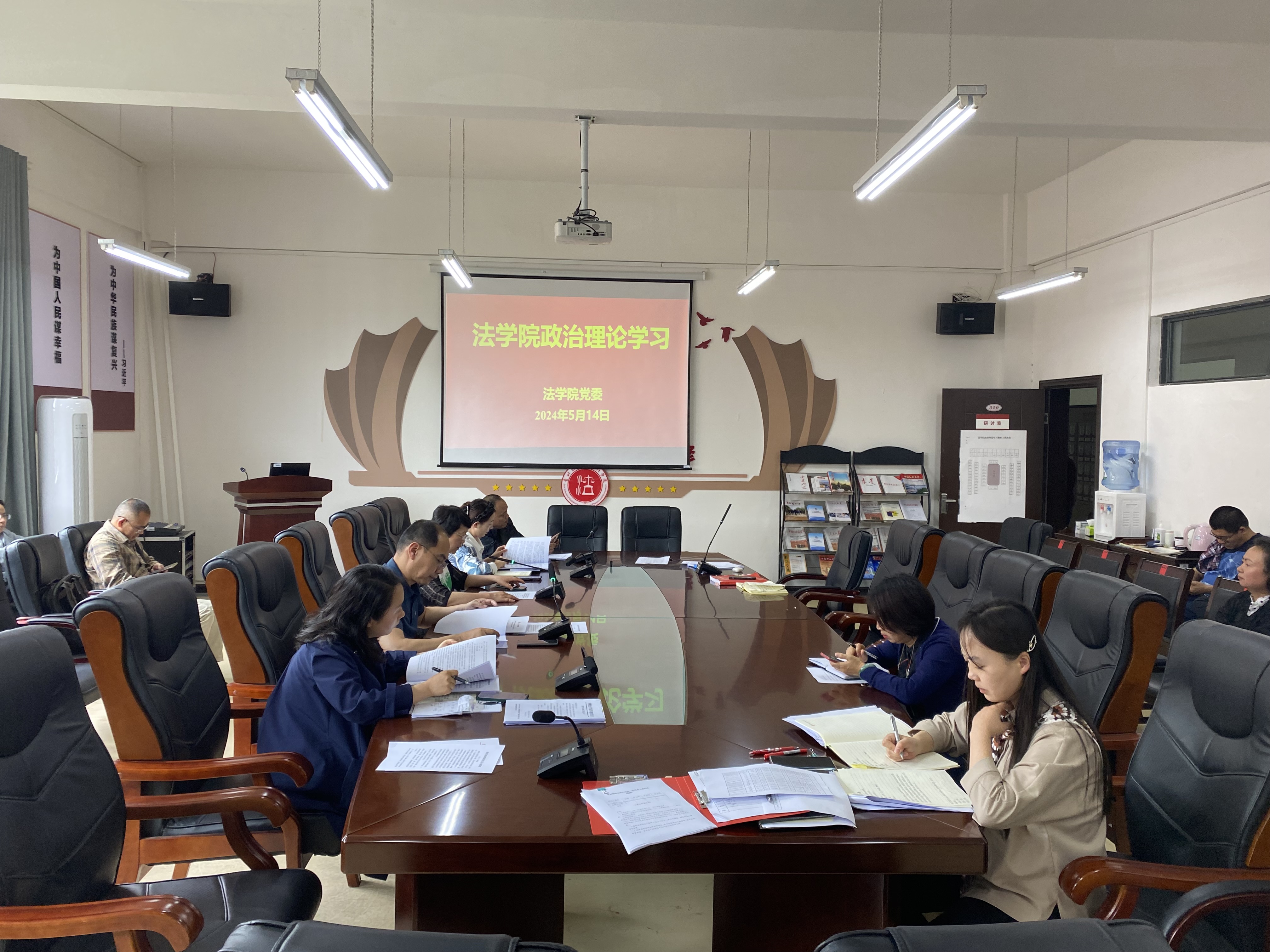 (法学院 莫丹洵 报道|摄影 )5月14日下午,法学院党委组织召开2024年度第四次教职工政治理论集体学习亚搏(中国)法治思想及重要法规研讨会。院领导及全院教职工出席会议,院党委书记邵新顺主持会议。