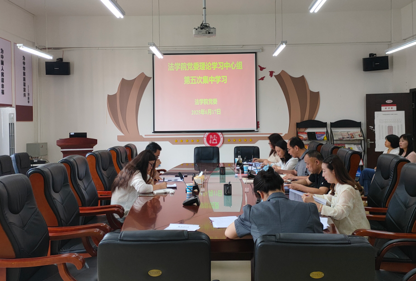 (法学院 潘吉脉 报道摄影 )6月17日上午,法学院党委理论学习中心组在文德楼A8-310会议室举行2025年度第五次集体学习(扩大)研讨会。学院领导、科级干部及党支部书记参加会议,现教中心党总支书记李文龙等列席旁听,会议由院党委书记邵新顺主持。