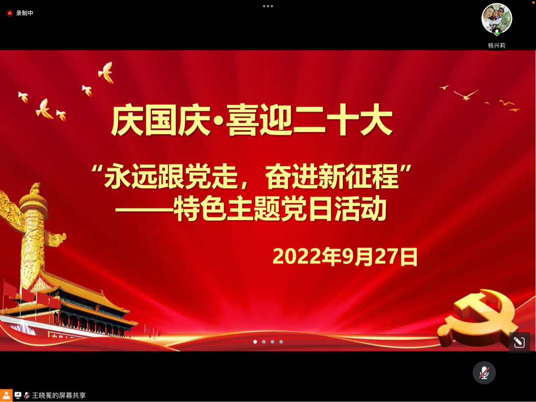 2022年9月27日下午2:30,法学院研究生第一党支部全体党员于腾讯会议线上参会,开展“庆国庆•喜迎二十大—永远跟党走,奋进新征程”主题党日活动。