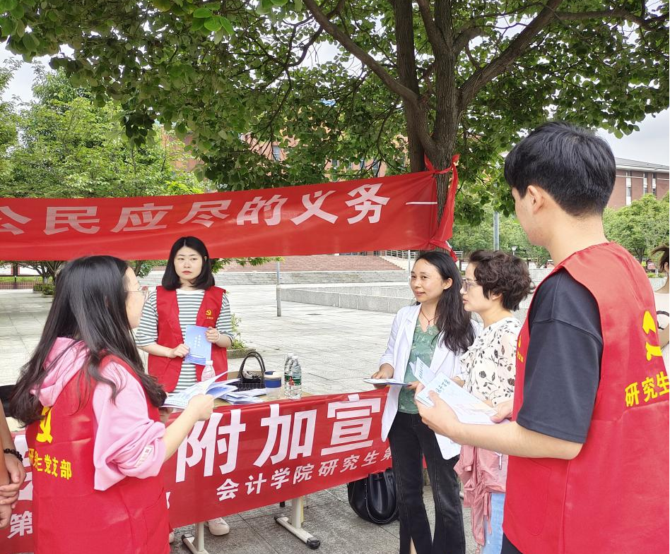 (法学院 图文/报道 李玉兰)为积极响应全国第32个税收宣传日,法学院研究生第二党支部与会计学院研究生第三党支部于2023年6月14日,在五四广场举办了个人所得税普法宣传结对共建活动,法学院党委委员、正处级专职组织员、纪委书记代莉莎,研究生第三支部书记曹斌,法学院研究生第二支部书记李玉兰参与了本次活动。