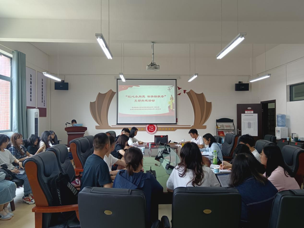 (法学院 图文/报道 田露丹)2023年6月18日下午,我院研究生第一党支部与贵州大学法学院法学硕士研究生第二党支部举办题为“红心永向党,浓情粽飘香”党支部共建活动,活动由我院研究生第一党支部书记杨兴莉主持,联系研究生第一党支部的党委委员、副院长宋昭澜到会指导。