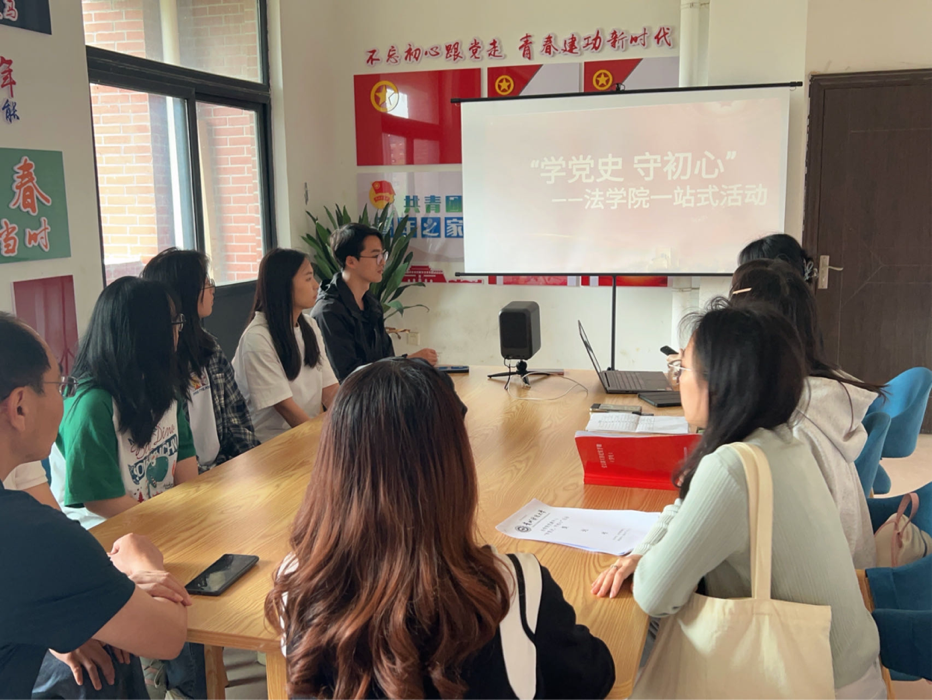 (法学院 图文/董瑶)为使当代大学生巩固党章知识,对中共党史有更加广泛、深入的认识和理解,5月31日,法学院于“党团之家”活动室开展了“学党史、守初心”活动。法学院党委书记邵新顺、副书记彭华出席该活动,10余名同学参与其中。