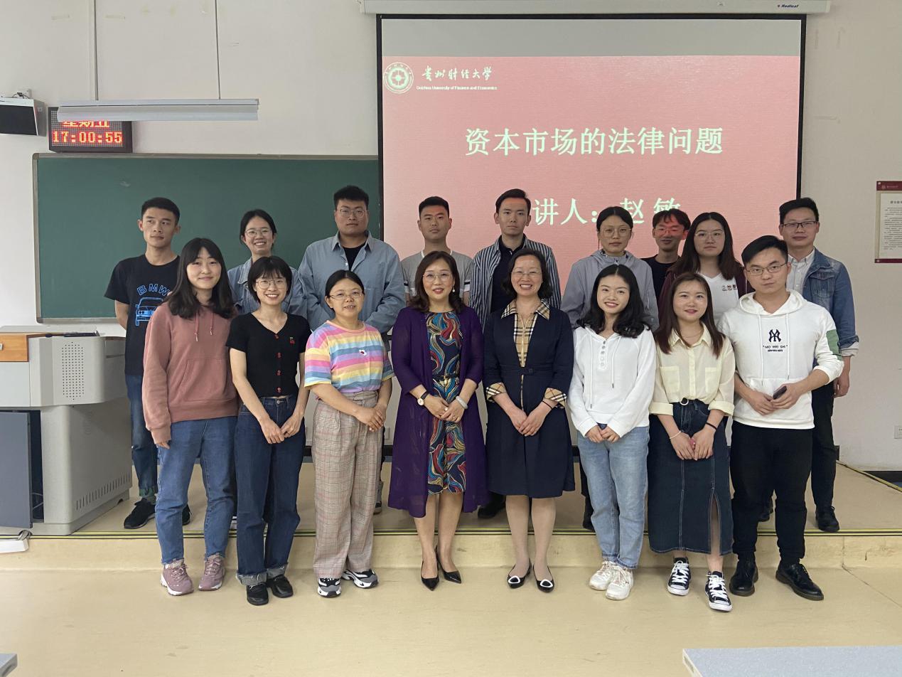 为营造学生学术创新氛围,提高学生的学习兴趣和学术创新参与率,活跃学术思想,引发学术争鸣,促进学术交流。2021年6月11日下午2点,我院特邀经济学博士、法学硕士赵敏律师在贵州财经大学花溪校区乐学楼1-2阶梯教室作“资本市场的法律问题”专题讲座。法学院副院长陈玉梅(正处级、主持工作)列席,法学院辅导员杨兴莉主持,法学院全体研究生参加此次讲座。