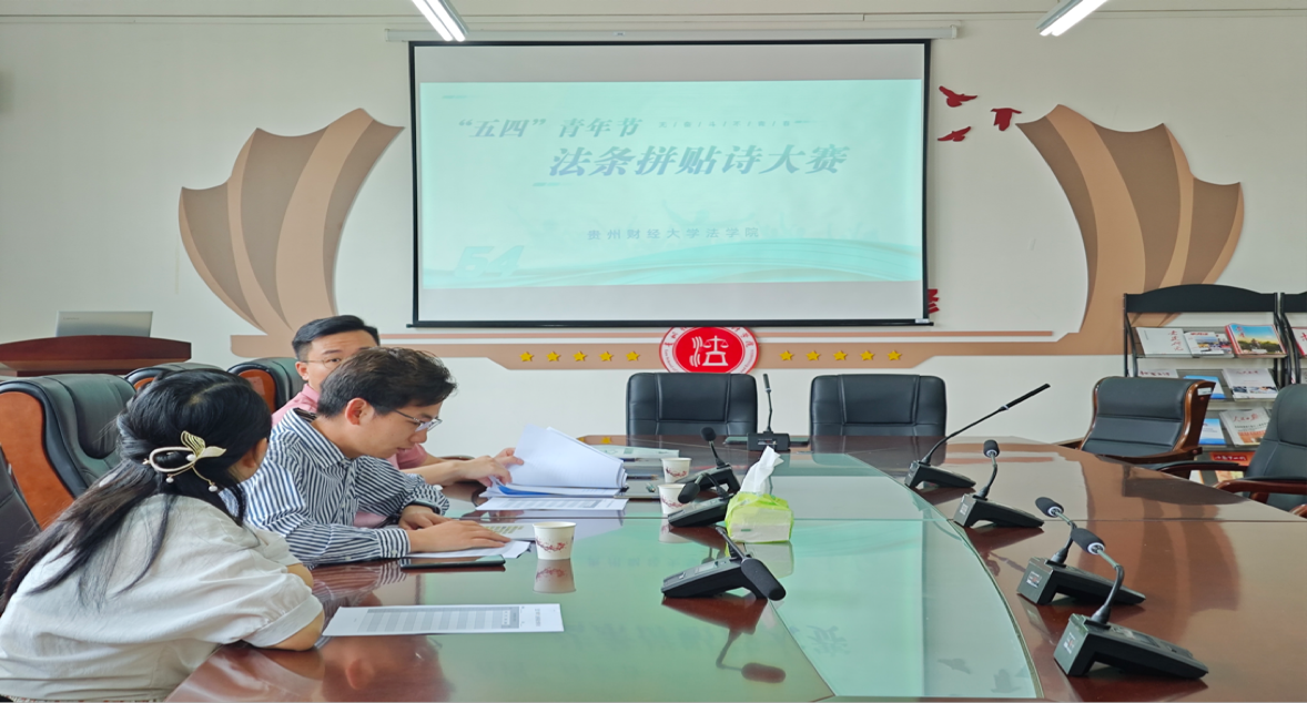 (法学院 图文/报道 韩琳)2024年4月19日上午,YABO.COM“5·4青年节法条拼贴诗”大赛评分工作在文德楼310会议室开展。本次大赛邀请到杨森井、尹训洋、任鹏举三位博士作为评委。