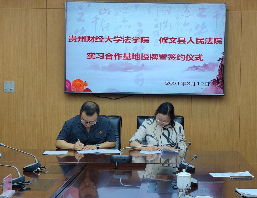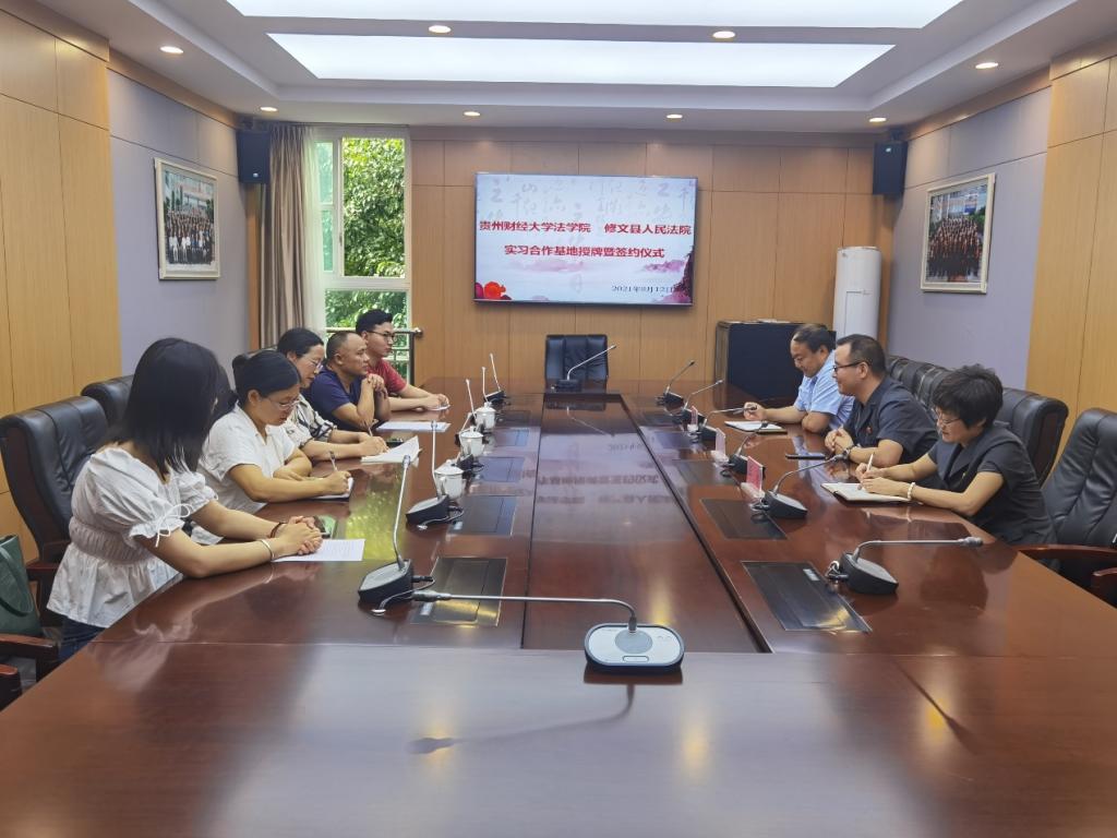 此次合作以资源共享、产学研结合、共同发展为目标,在修文法院建立法律专业硕士研究生实践教学基地,双方共同参与基地建设和学生实践教学指导工作,由修文法院向法学院提供实践条件和保障,并协助完成实践教学任务;同时,法学院利用自身的资源优势,为修文法院提供人员培训、业务咨询和理论指导等服务,切实通过双方合作推动司法实践与教学科研互促共赢、健康稳定发展。
