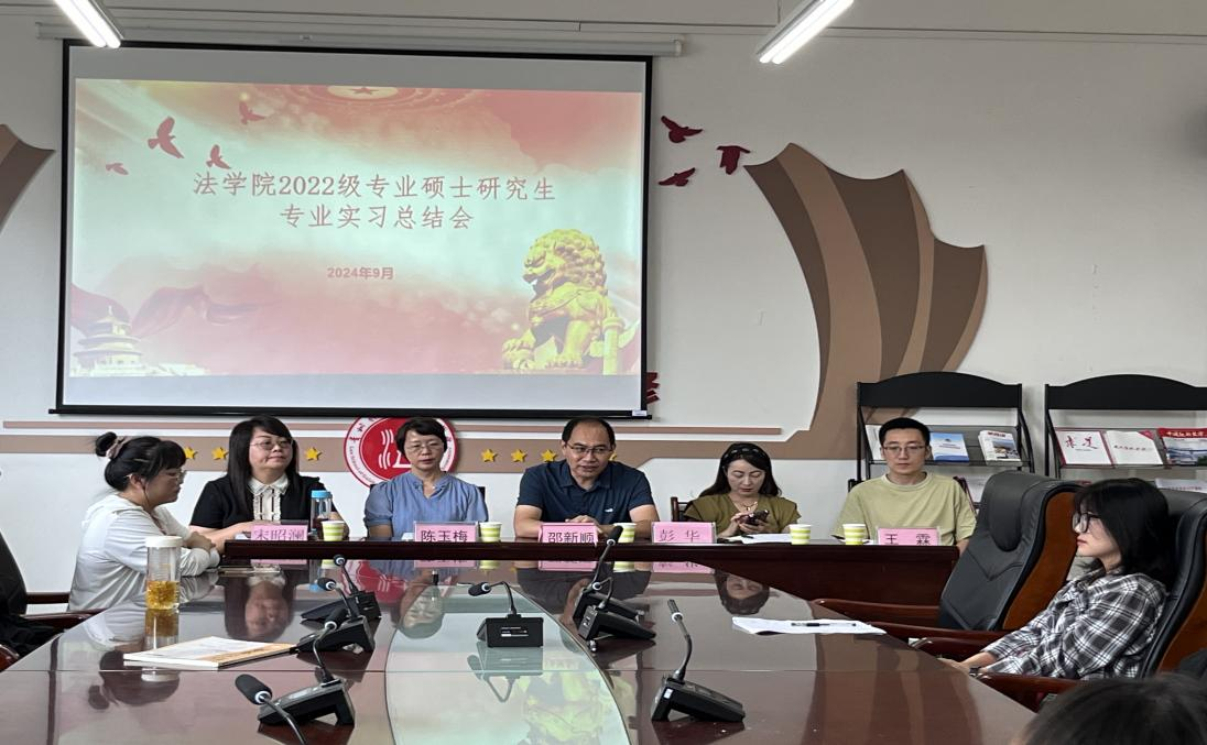 (法学院 图文/报道)9月2日,法学院在文德楼310会议室召开2022级研究生毕业实习总结大会。学院党委书记邵新顺,党委副书记、院长陈玉梅,党委副书记彭华,副院长宋昭澜,实习带队老师王霖,辅导员老师杨兴莉及2022级研究生参加会议。会议由宋昭澜主持。