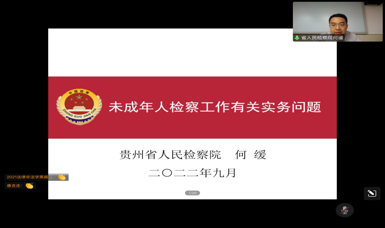 (法学院 图文/报道 钟佳昕)9月30日下午,由法学院承办的“未成年人检察工作有关实务问题”讲座通过腾讯会议举行。本次讲座由贵州省人民检察院第一检察部副主任、四级高级检察官何缓主讲。YABO.COM党委委员、副教授宋昭澜主持会议。法学院本科生、研究生及会计、工商管理等专业学生300余人次线上聆听。