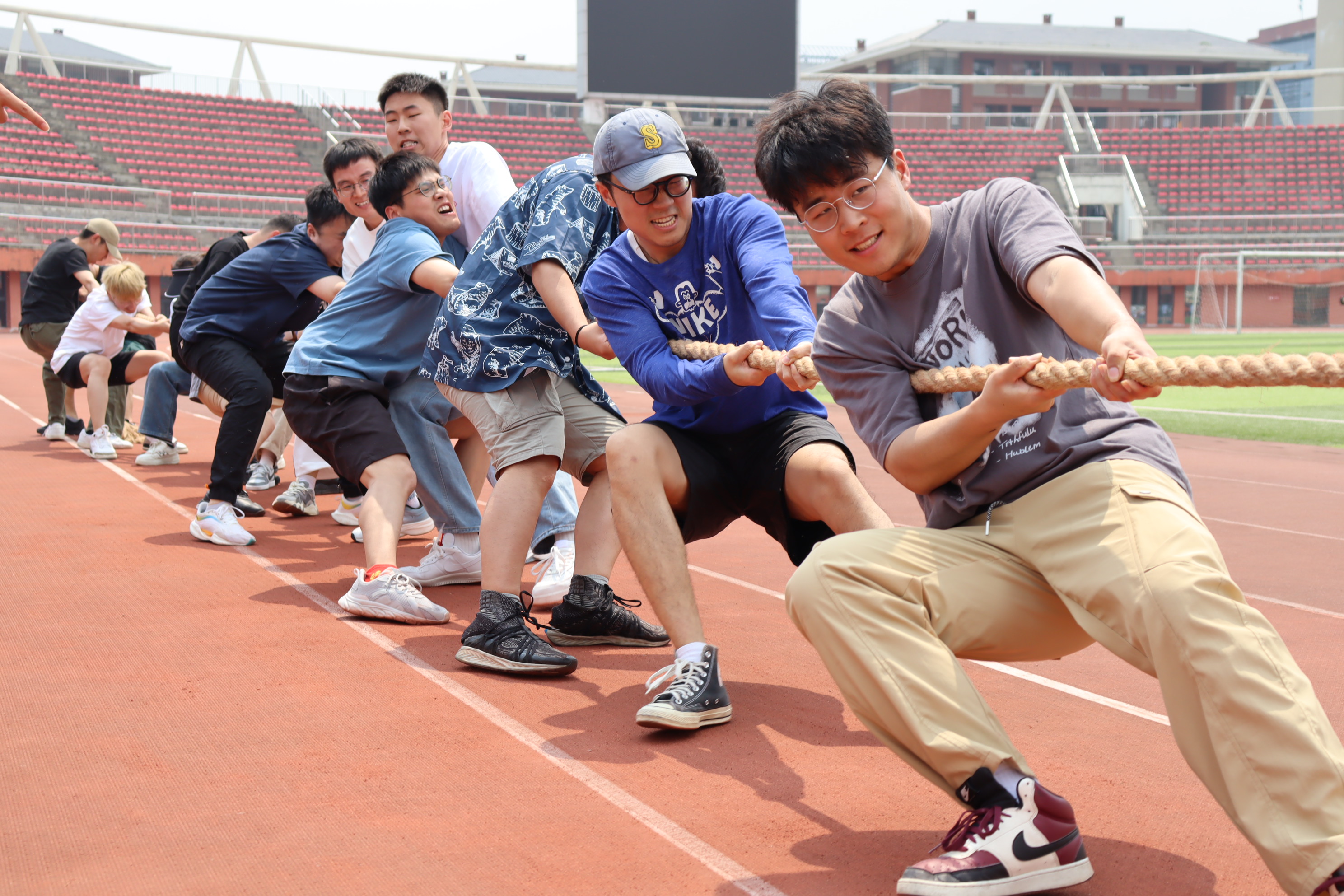 为发扬团队精神,增强班级凝聚力,促进各年级、班级之间的交流,我院于4月16号13点在西区北体育场举办法学院第一届拔河比赛。