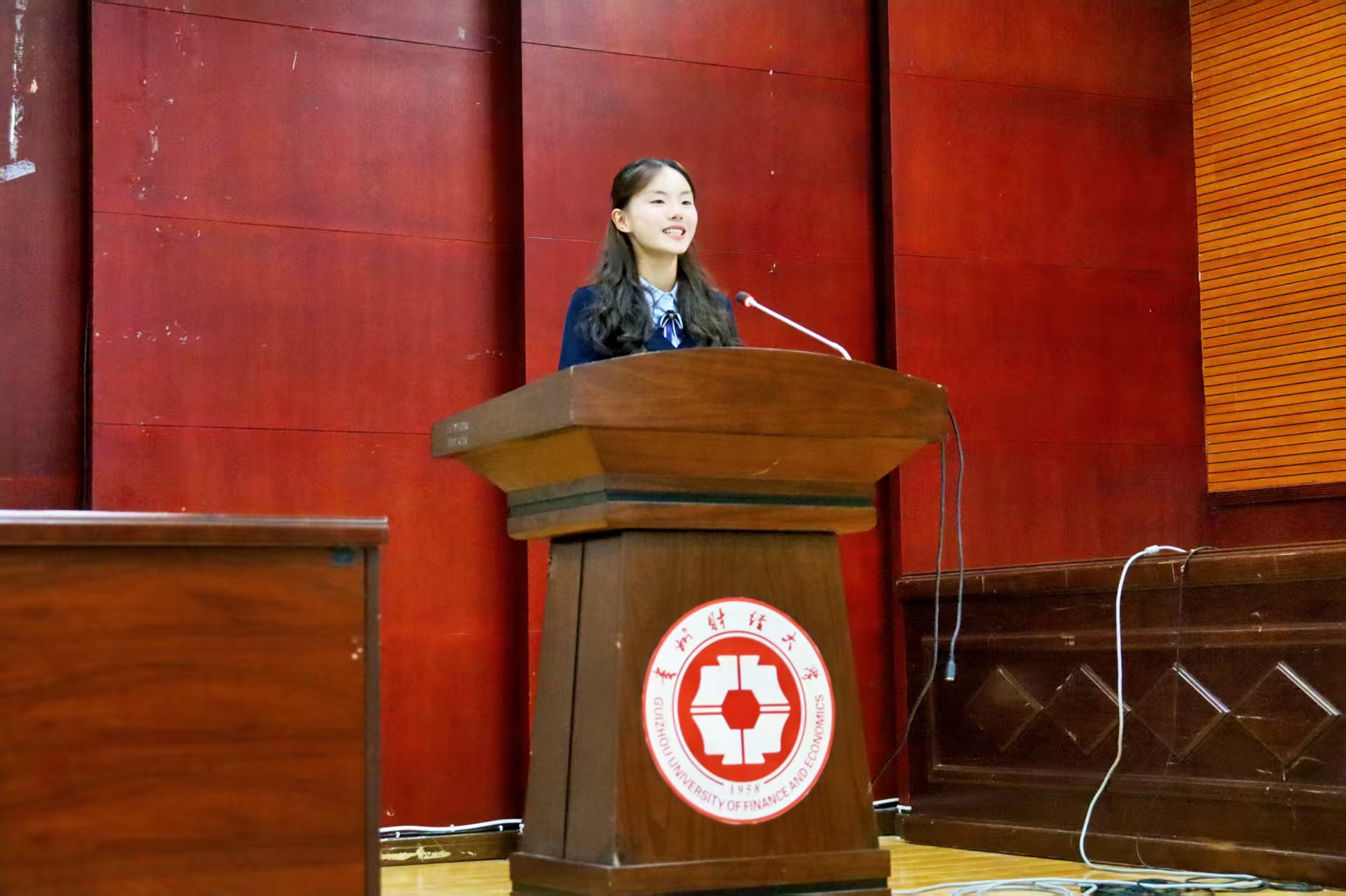新生代表赵婷则站在“同龄人角度”发声。她分享了自己选择法学专业的初衷,表达了对大学生活的期待,以及未来将努力学习、积极适应专业学习的决心,真实展现了新生对法学领域的向往与入学初期的规划,引发在场新生的共鸣。