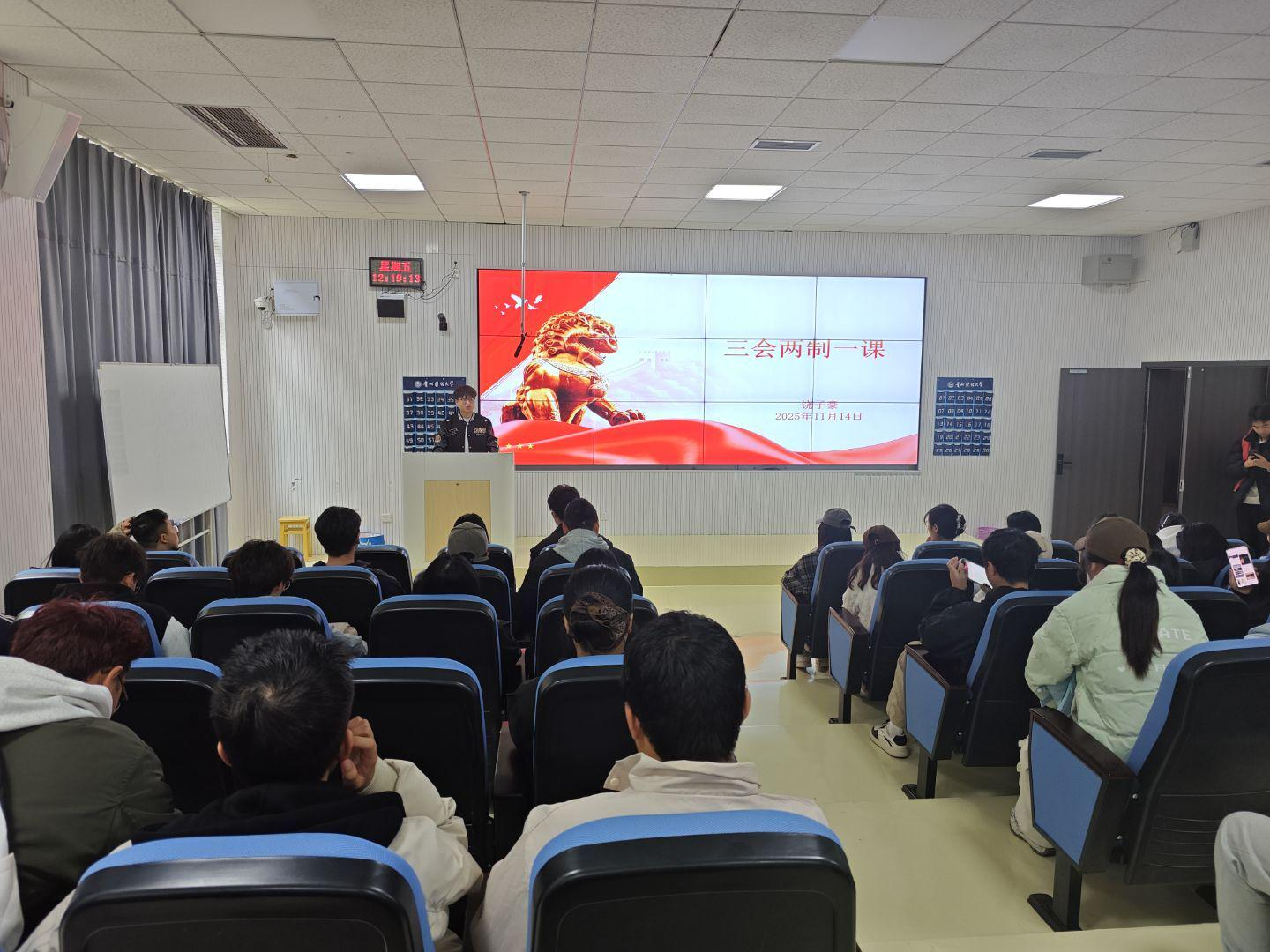 法学院团委学生负责人饶子豪为入团积极分子作“三会两制一课”团务规范培训。他围绕“三会(支部大会、支部委员会、团小组会)”“两制(团员教育评议制度、团员年度团籍注册制度)”“一课(团课)”的核心内容、流程要求展开讲解,结合法学院团支部工作实际,助力团员青年懂制度、用制度,提升团支部组织力。