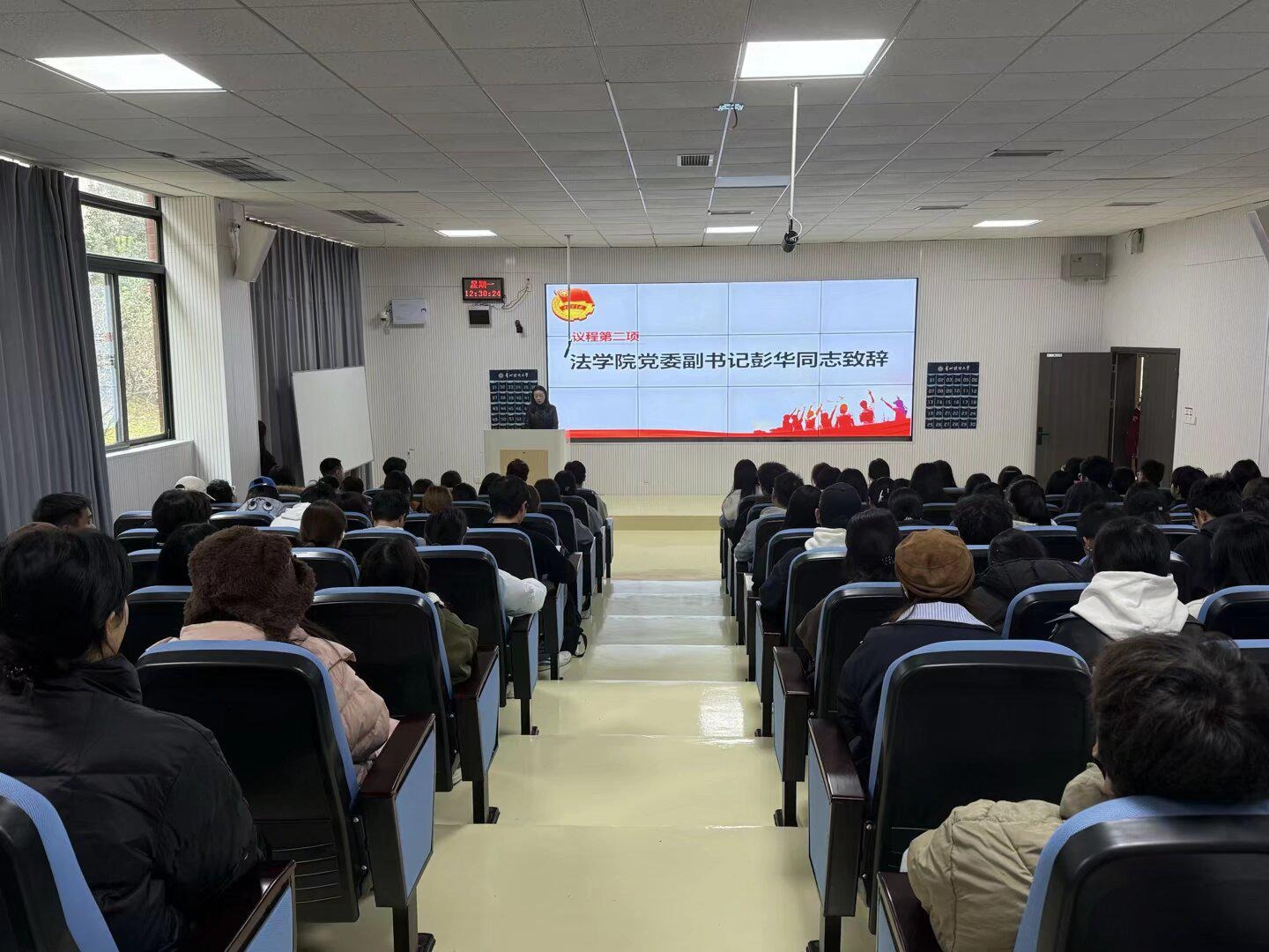 在开班仪式上,法学院党委副书记彭华授开班第一课。她寄语青年团员:“作为法学专业学子,要以团课为契机筑牢理想信念,将法治信仰融入青春底色,在服务国家法治建设中彰显青年担当。” 现场掌声雷动,团员们的青春热情被迅速点燃。