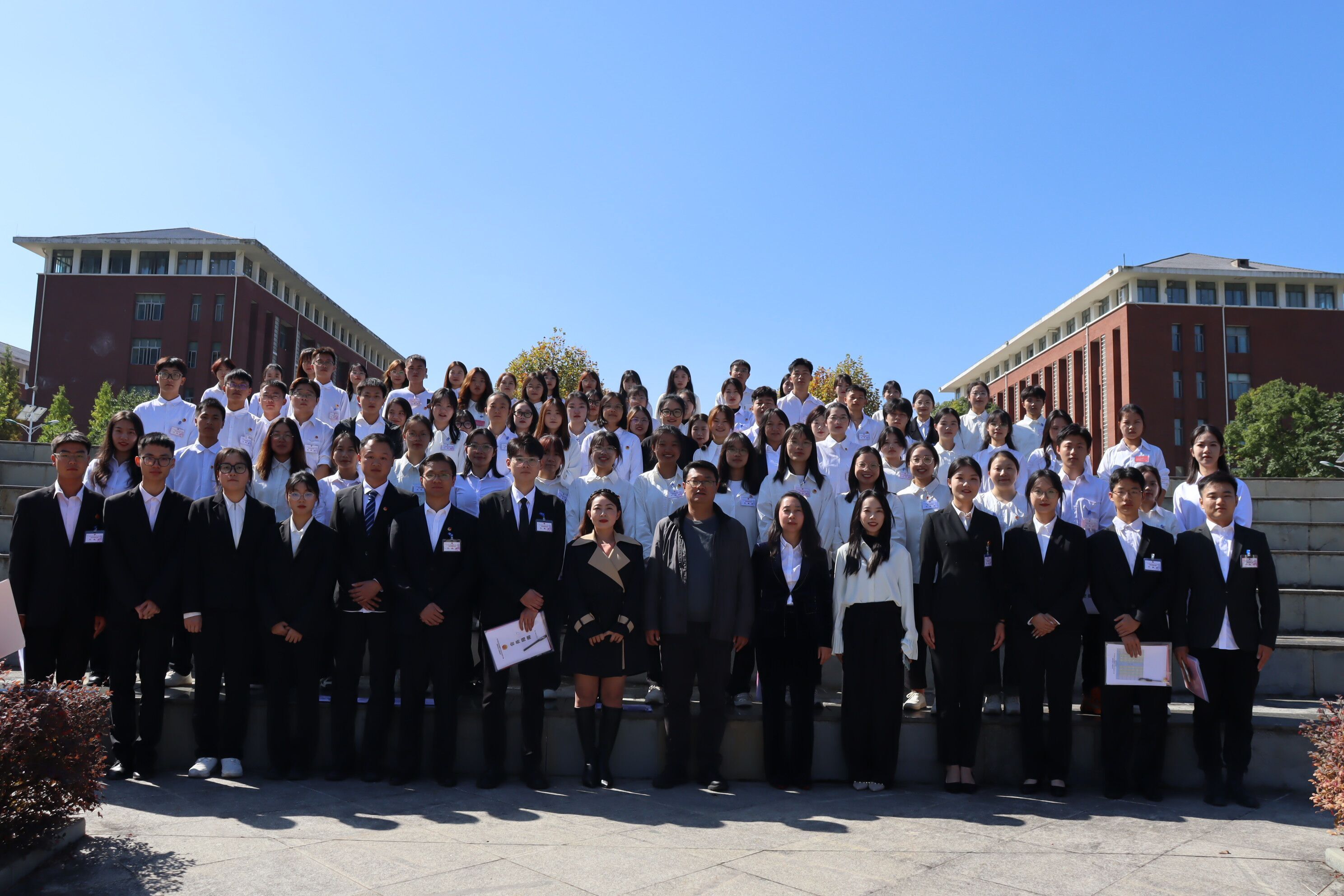 学生会主席米钰作法学院第三次学生代表大会暨研究生代表大会工作报告。报告完毕后,各位领导、嘉宾和代表在鼎新湖畔合影。随后,各代表团分组讨论。