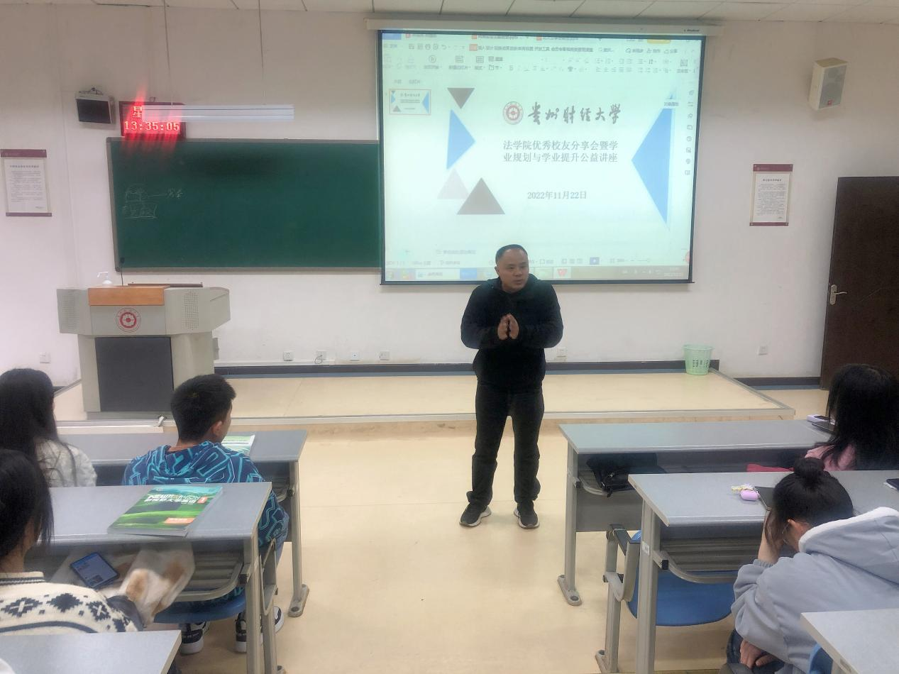 (法学院 图文/报道)2022年11月22日,YABO.COM22级本科新生在乐学楼参加了法学院组织的优秀校友分享会暨学业规划与提升公益讲座。讲座由法学院曹务坤副院长主持,我院优秀校友代表朱凤飞、罗飞、柴佳为同学们作了学业规划与提升的分享。