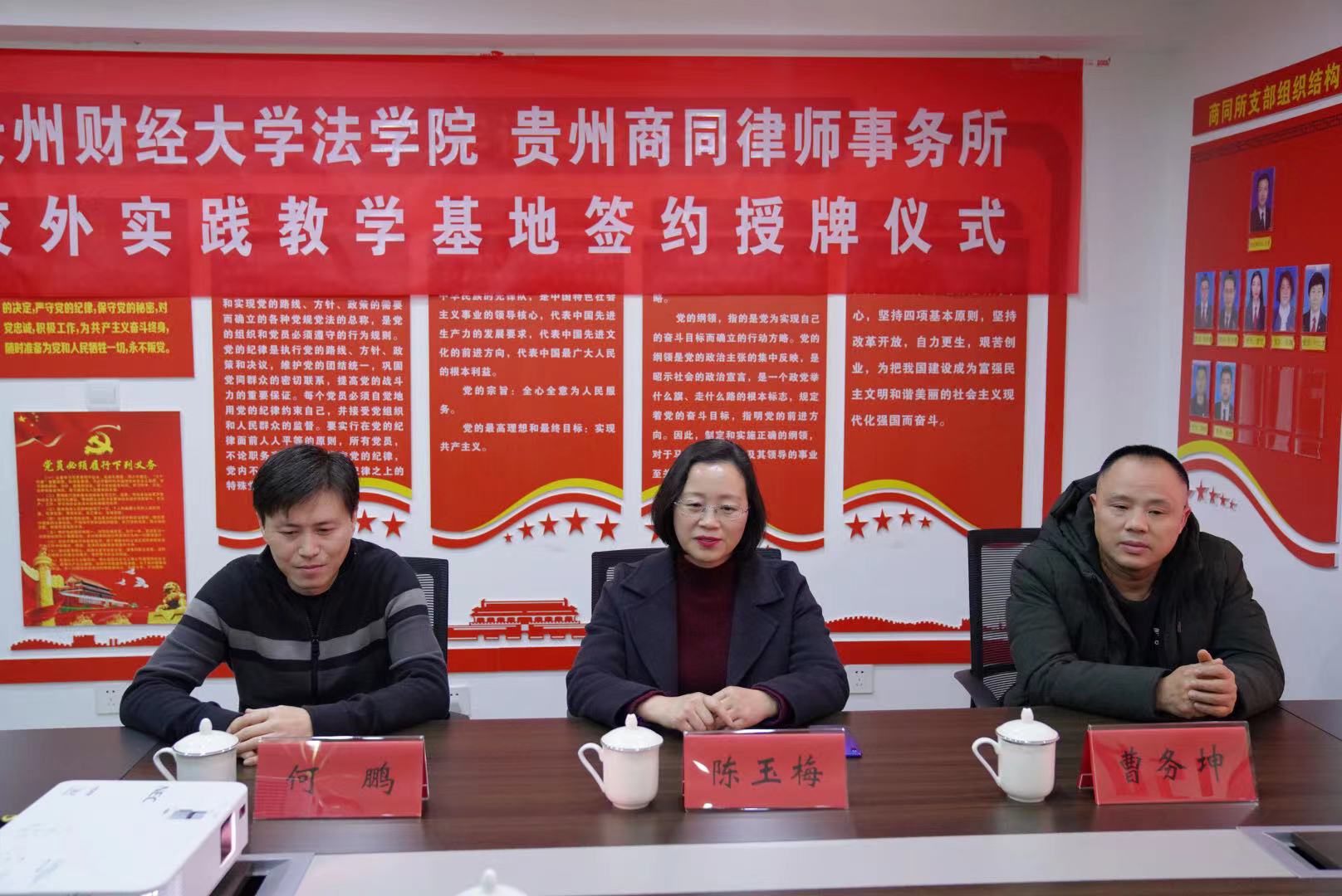 签约暨授牌仪式由贵州商同律师事务所党支部书记王军主持,王军首先对陈玉梅院长一行的到来表示热烈的欢迎和真诚的感谢,并介绍了贵州商同律师事务所成立及发展历程。陈玉梅院长对YABO.COM的发展历程、师资情况、人才培养和社会服务等方面做了介绍,希望以设立校外实践教学基地为平台丰富课堂教学内容,加强教学理论与实践的结合,提高学生综合素质和社会适应能力。