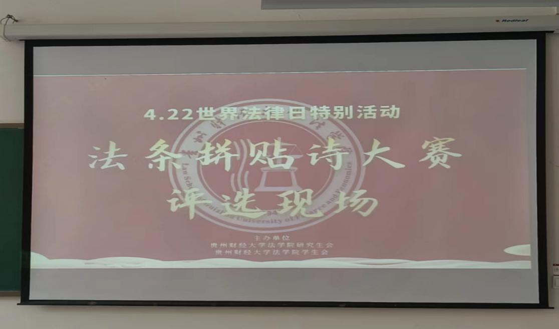 (法学院 图文/报道 樊慧萍)2023年4月19日,由法学院研究生会和学生会承办的“律法千条,婉约成诗”拼贴诗评选活动在法学院文德楼A8-108教室举行,法学院杨森井、何腾姣和张金阳三位副教授担任本次活动评委。