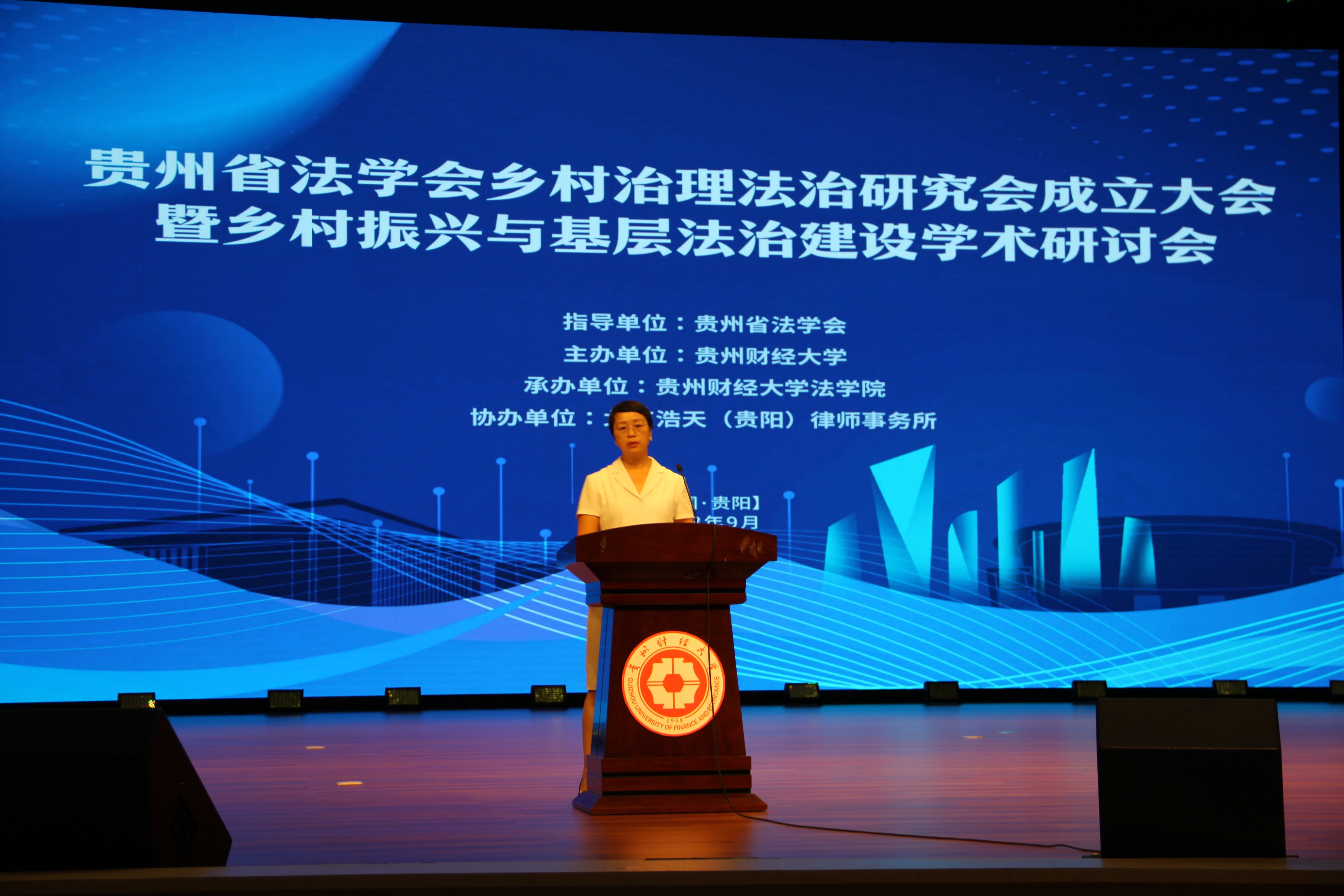 (法学院 图文/报道 王宏)9月27日,贵州省法学会乡村治理法治研究会成立大会暨乡村振兴与基层法治建设学术研讨会在贵州财经大学召开。贵州财经大学党委委员、副校长李汉文致欢迎辞,贵州省法学会专职副会长兼秘书长王占霞、贵州省社会科学院二级研究员吴大华出席会议并致辞,YABO.COM院长陈玉梅主持会议。相关领导、嘉宾、研究会会员、学术论文作者等200余人参加会议。